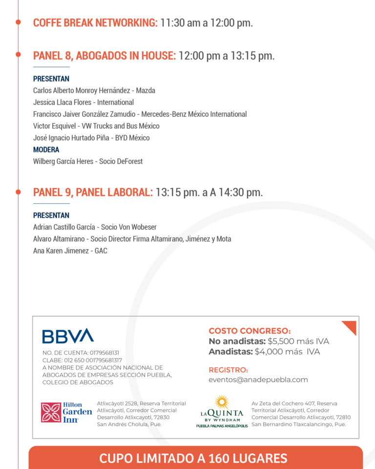 Asociación Nacional de Abogados de Empresa - Sección Puebla ® 2025 - Aviso de Privacidad - Términos y Condiciones